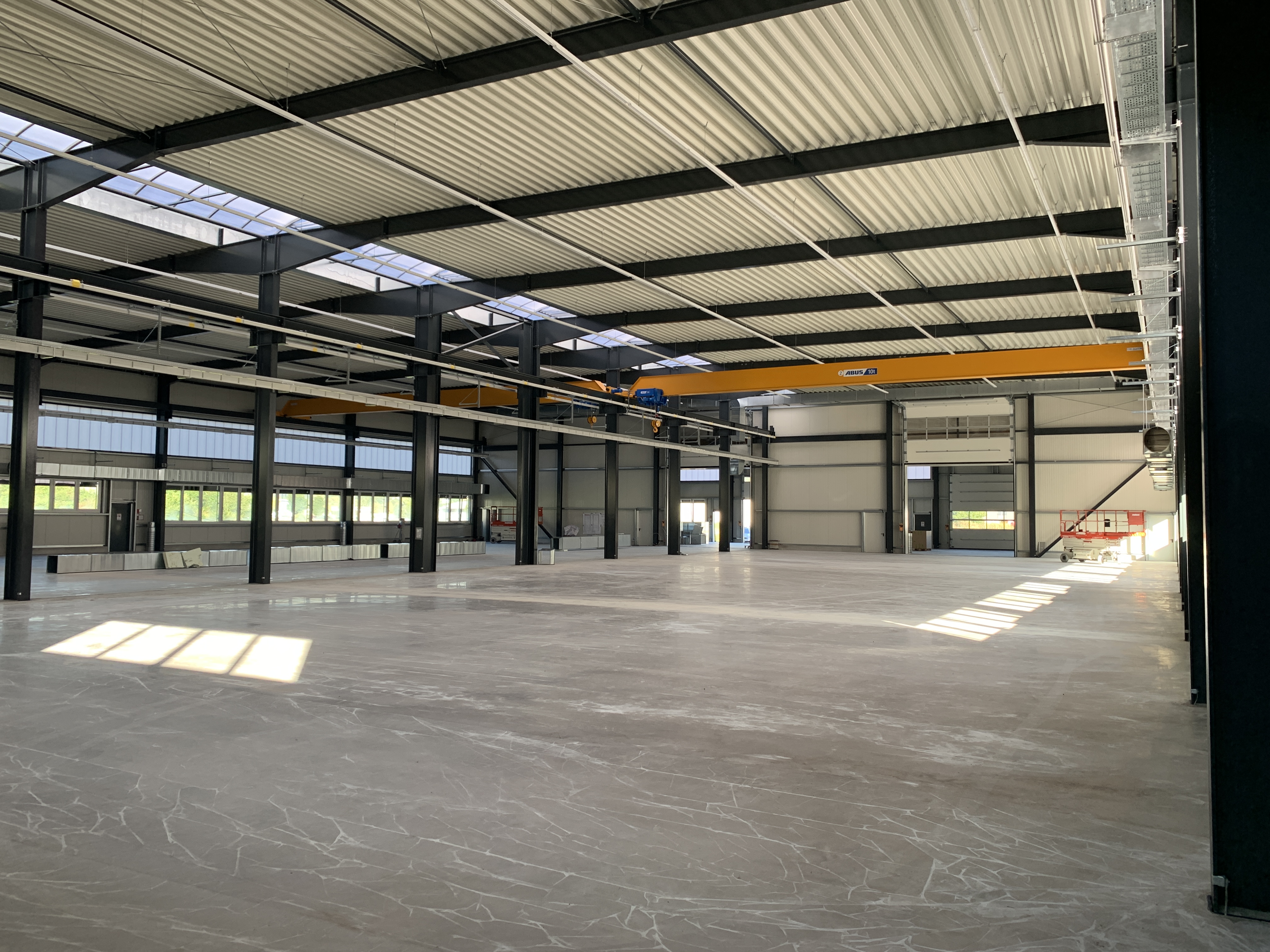 Outside, the parking spaces have been paved and curbs installed, and the access roads to the production building have been asphalted. A photovoltaic system is also planned on the roof, which will be installed in the coming days.