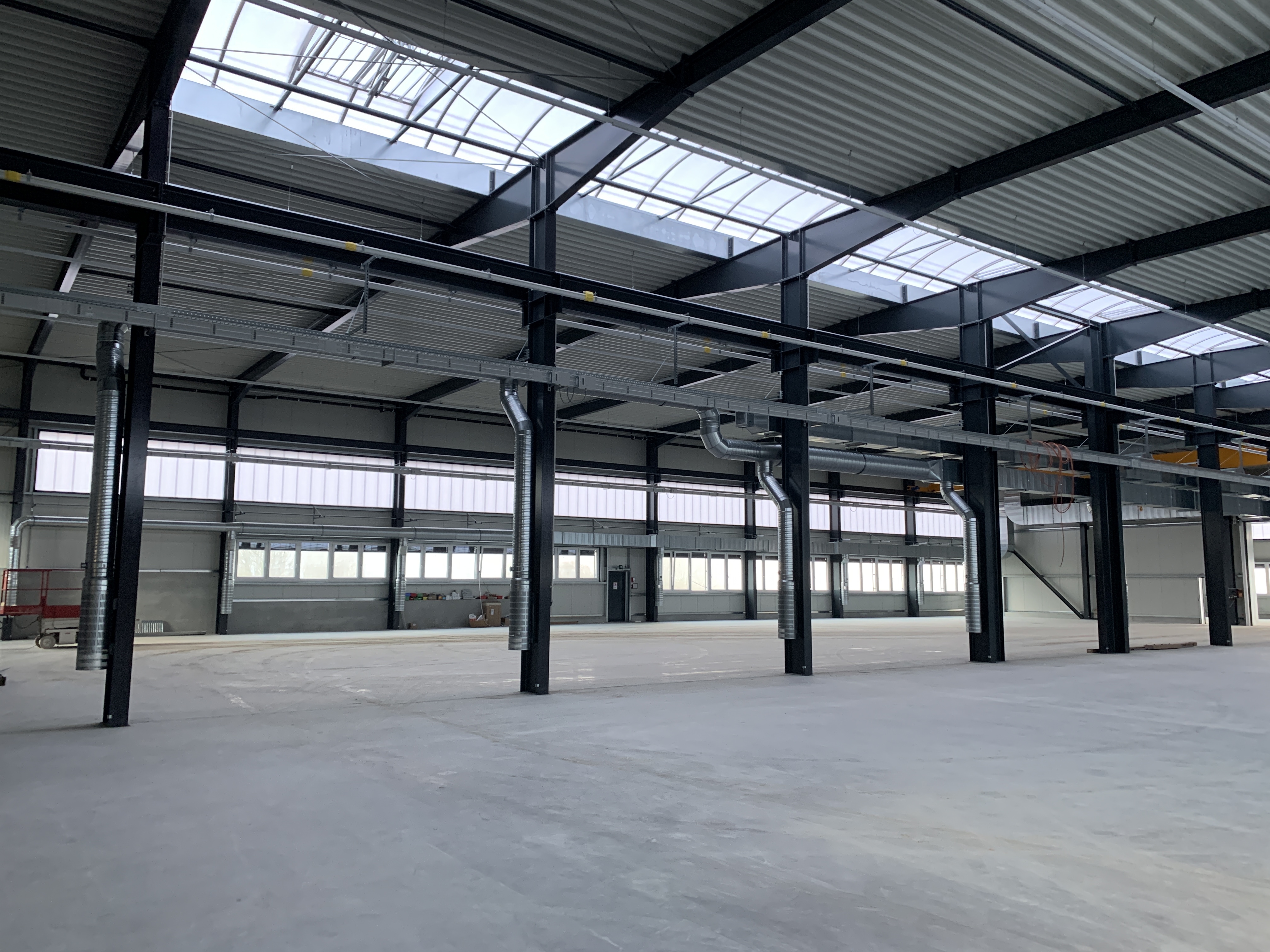 In this part of the construction phase, the focus was on the interior work. After completion of the hall floor, various works were carried out for the installation of a state-of-the-art ventilation system with heat recovery. This system extracts the heat from the used air and supplies it to the fresh air, thus ensuring a high level of air quality. The system will be completed and put into operation in the coming weeks.